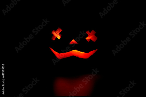 Orange pumpkin isolated on black background. Halloween and Thanksgiving decorations.