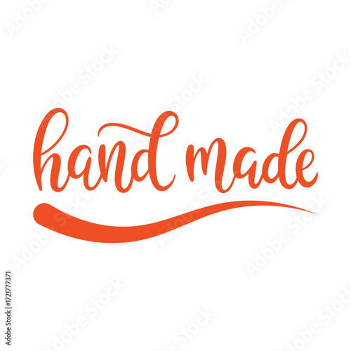 Orange script text handmade with a curved underline on white background lettering