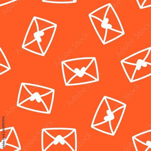 Orange seamless pattern with white envelope with heart