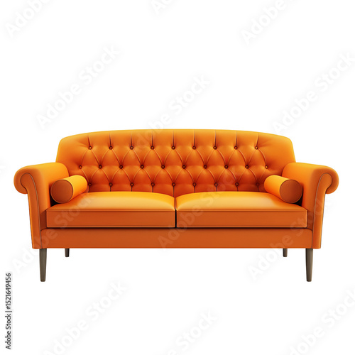 Orange Tufted Chesterfield Sofa – Transparent Background