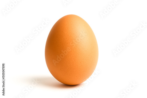 Organic farm fresh brown chicken egg standing upright on bright white background isolated food photography minimal nutrition concept ingredient