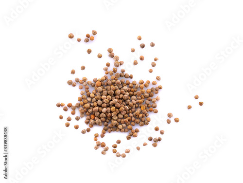 Organic natural sesame seeds (Perilla frutescens) isolated on white background.