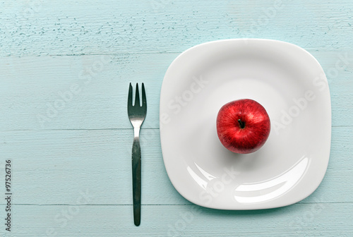 Organic red apple on a plate