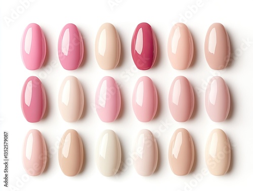 Organized nail polish swatches on white background