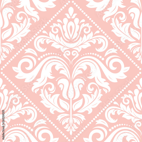 Orient classic pink and white pattern. Seamless abstract background with vintage elements. Orient background