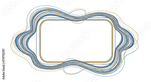 Ornate abstract frame with decorative wavy lines and gold accents, elegant border design element.