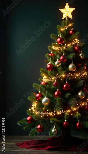 Ornate Christmas tree in corner with sparkling ornaments, , sparkling lights, Christmas trees