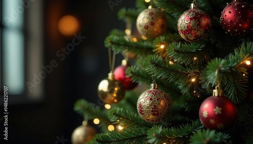Ornate decorated christmas tree with religious ornaments, ornaments, art, decoration