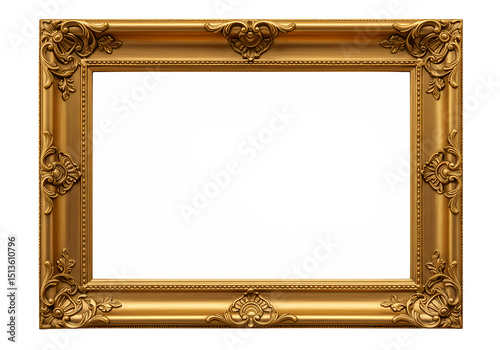 Ornate Gold Picture Frame isolated on transparent baackground