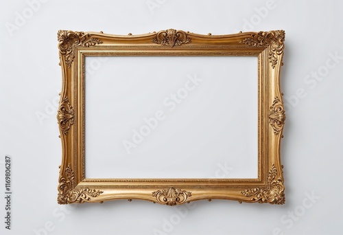 Ornate gold picture frame on a white wall Perfect for showcasing your artwork or photos