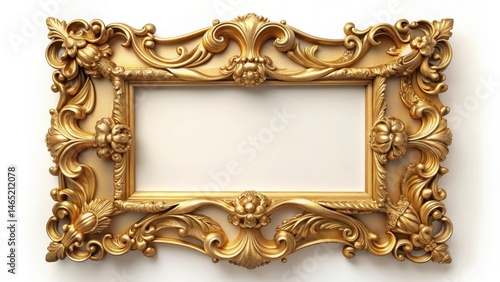 Ornate gold picture frame with curved lines and intricate details , rococo, frame