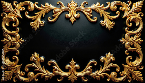 Ornate golden frame with intricate floral patterns on a dark background for elegant design