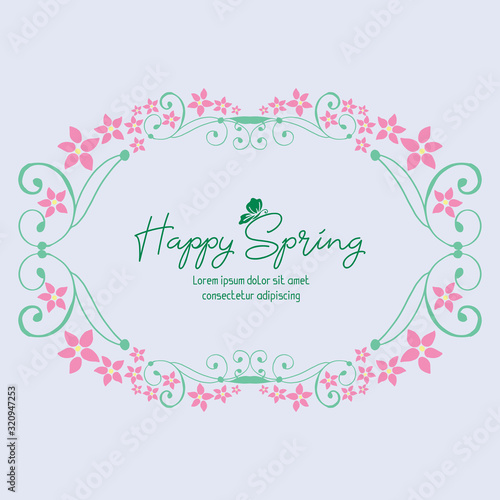 Ornate Pattern of leaf and pink flower frame, for happy spring elegant greeting card wallpaper design. Vector