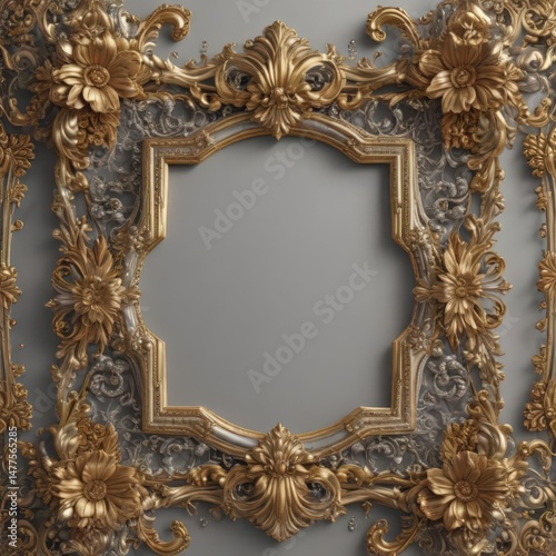 Ornate silver & gold frames; swirling floral motifs, vintage style , vintage frame, motif, ornate frame