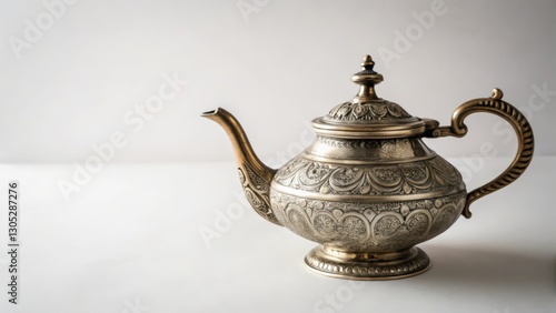 Ornate Silver Teapot on White Background