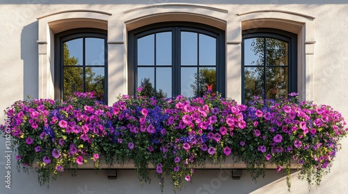 Ornate windows adorned with vibrant flower boxes