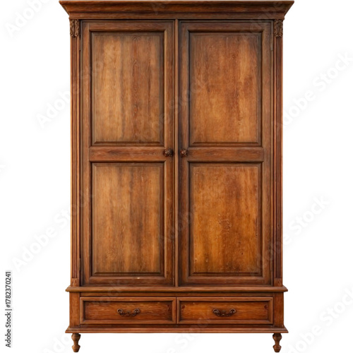 Ornate wooden antique wardrobe with elegant detail and drawers