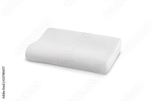 Orthopedic Pillow with a Memory Effect. Medical treatment pillow for sleep. Comfort Memory Pillow under the head with a recess under the shoulder isolated on white background. Sleeping Support Pillow
