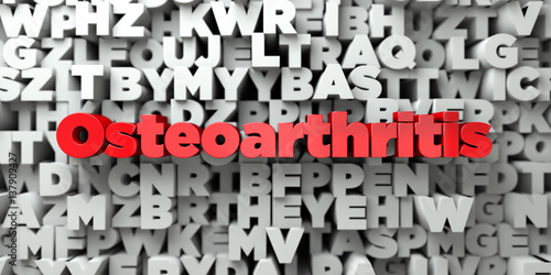 Osteoarthritis - Red text on typography background - 3D rendered royalty free stock image. This image can be used for an online website banner ad or a print postcard.