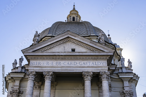 Our Lady at Montesanto church (Chiesa di Santa Maria in Montesanto, 1675) - Catholic Renaissance style church on Piazza del Popolo in Rome. ROME, ITALY.