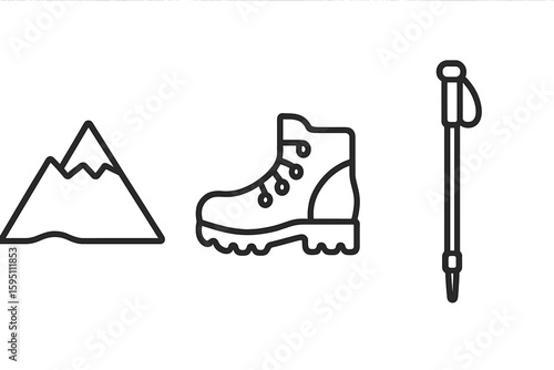 Out icon : mountain hiking boots walking stick perfect icons style isolated transparent
