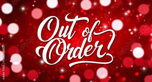 out of order calligraphic lettering on red bokeh glitter festive sparkles background
