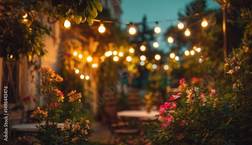 Outdoor garden lights at night flowers greenery