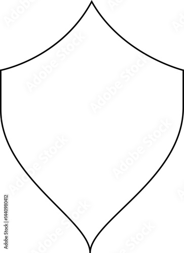 Outline contour thin line emblem with a fortress-inspired shield, featuring castle-like elements and a protective structure.