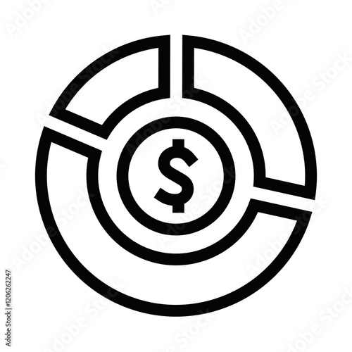 Outline icon of a pie chart with a dollar symbol. Editable stroke.