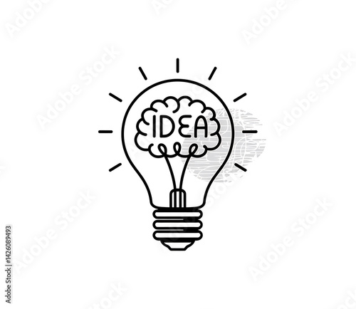 Outline illustration of a light bulb with a brain inside containing the word IDEA symbolizing creativity and inspiration.