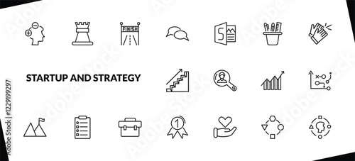 outline startup and strategy icons set. editable linear rook, finish line, discussion, and other 15 icons in this category isolated on transparent background.