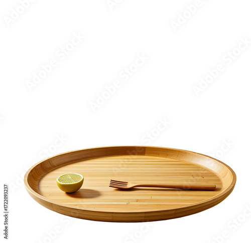 Oval bamboo serving tray with lime and spreader, studio shot, food styling