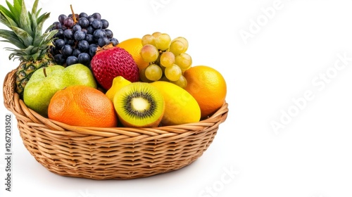 Oval Basket with Assorted Exotic Fruits on a White Background Still Life