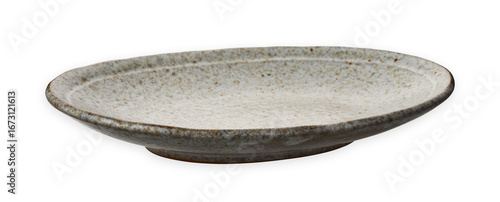 Oval ceramic plate, Empty plate with granite texture, isolated on white background with clipping path, Side view