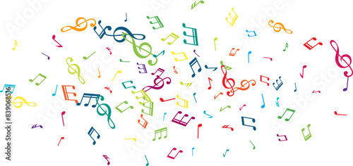 Oval from flying music notes. Vector decoration element in rainbow colors.