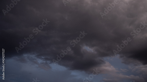 Overcast sky with dark clouds. Dark sky before a thunder-storm. The gray cloud background before rain.