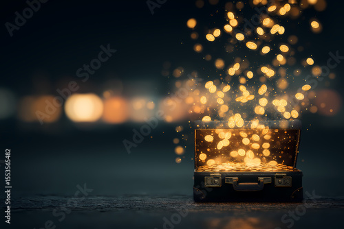 Overflowing Golden Coins of money Wealth and Success from a Business Suitcase