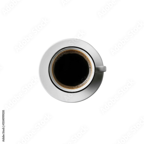 Overhead View of a Cup of Black Coffee on a White Saucer