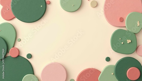 Overlapping Circles, Green, Pink, and Beige with Decorative Elements on Plain Beige Background