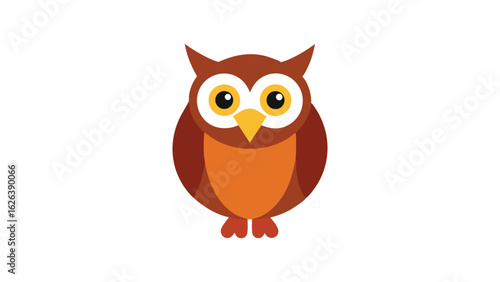 Owl bird in wise sitting pose with expressive eyes perfect for mystery forest and nocturnal art Vector illustration.