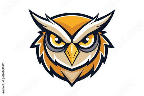 Owl head logo shows captivating yellow eyes with a striking stylized appearance