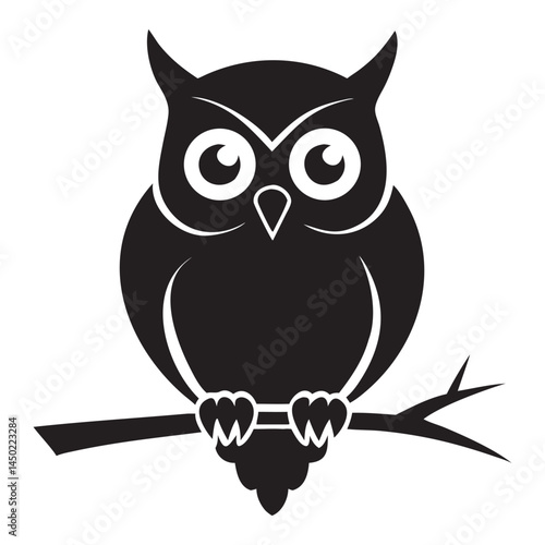 Owl Silhouette Vector Graphic, Stylish Black Silhouette of an Owl on a Branch, Owl icon, Owl logo, Owl vector silhouette