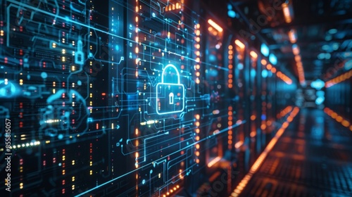 padlock secured to a motherboard symbolizes cybersecurity, data protection, and privacy, emphasizing the importance of safeguarding sensitive information