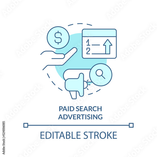 Paid search advertising turquoise concept icon. Type of digital ads abstract idea thin line illustration. Isolated outline drawing. Editable stroke. Arial, Myriad Pro-Bold fonts used