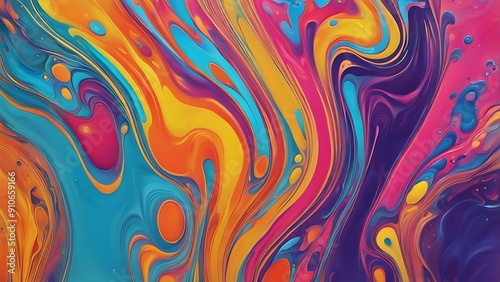 Paint Pouring: Vibrant paint flowing and blending in a pour art style, with dynamic swirls and smooth transitions between colors.