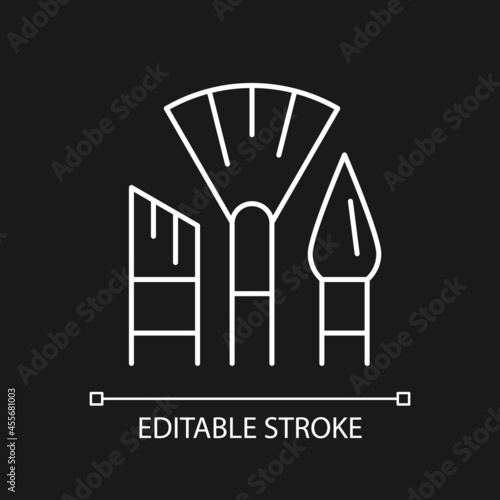 Paintbrushes white linear icon for dark theme. Brush for paint applying. Drawing tool. Thin line customizable illustration. Isolated vector contour symbol for night mode. Editable stroke
