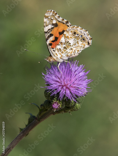 Painted Lady (Vanessa cardui) butterfly on a pink flower