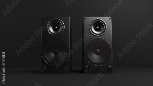 Pair Of Black Loud Speakers Isolated on black background. Generative AI