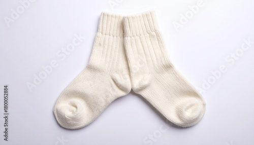 Pair of White Ribbed Cotton Socks on White Background