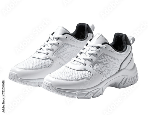 Pair pristine white sneakers with mesh and dark trim, angled